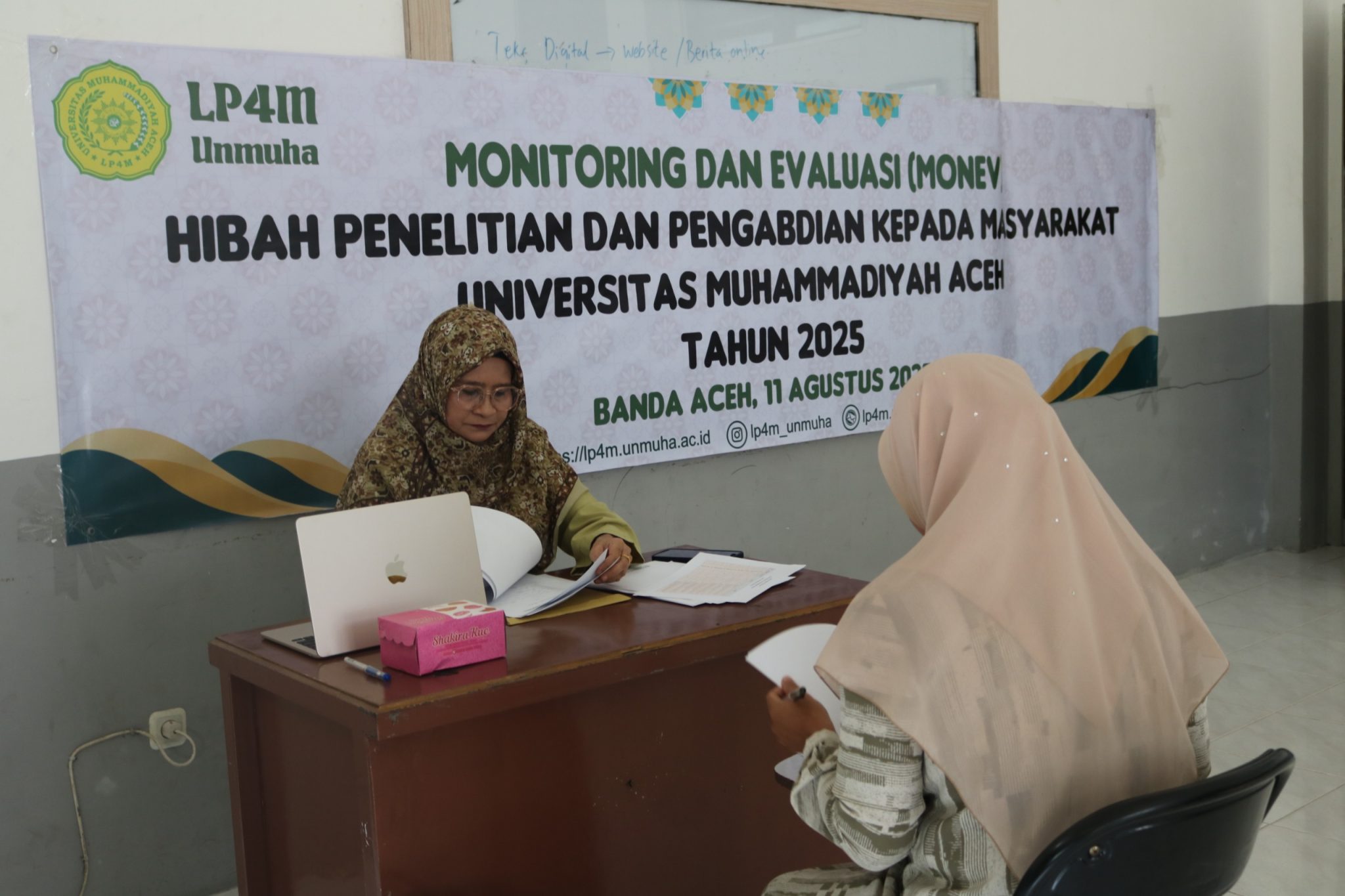 Lembaga Penelitian, Penerbitan, Pengabdian, dan Pengembangan Masyarakat Universitas Muhammadiyah Aceh (LP4M Unmuha) menggelar Monitoring dan Evaluasi (Monev) pelaksanaan Hibah Penelitian dan Pengabdian kepada Masyarakat tahun anggaran 2024/2025.